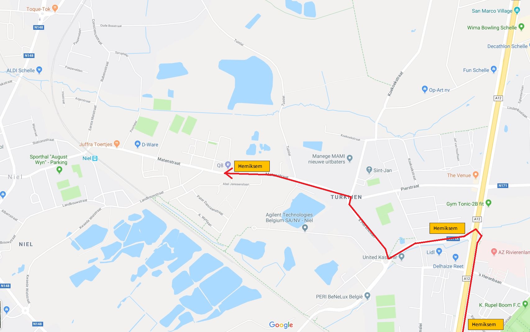 Verkeer vanuit Boom richting Hemiksem wordt aan de rotonde ter hoogte van het AZ Rivierenland omgeleid naar Niel (zie kaartje). Van in Niel gaat het over Schelle naar Hemiksem. Ter hoogte van het kruispunt van de N177 met de Guido Gezellestraat is het niet mee mogelijk om linksaf naar de Helststraat te rijden.
